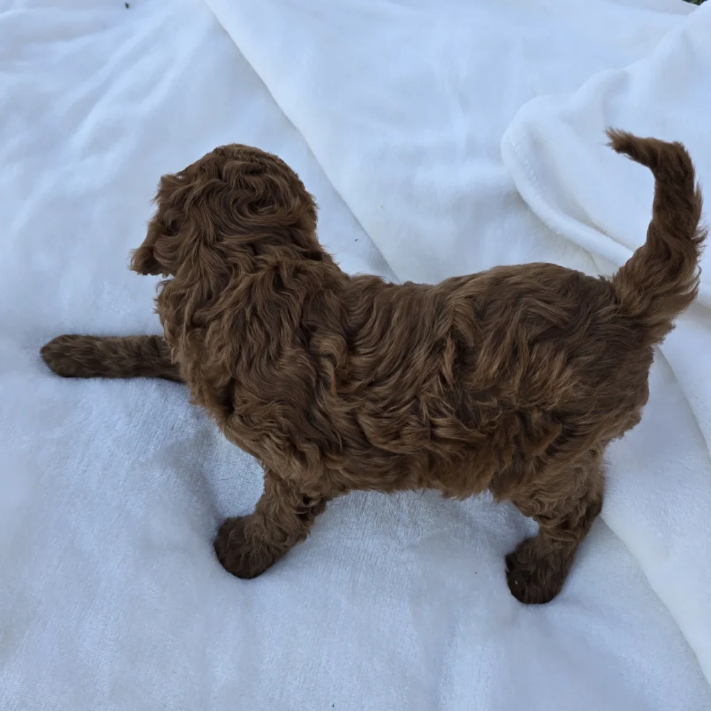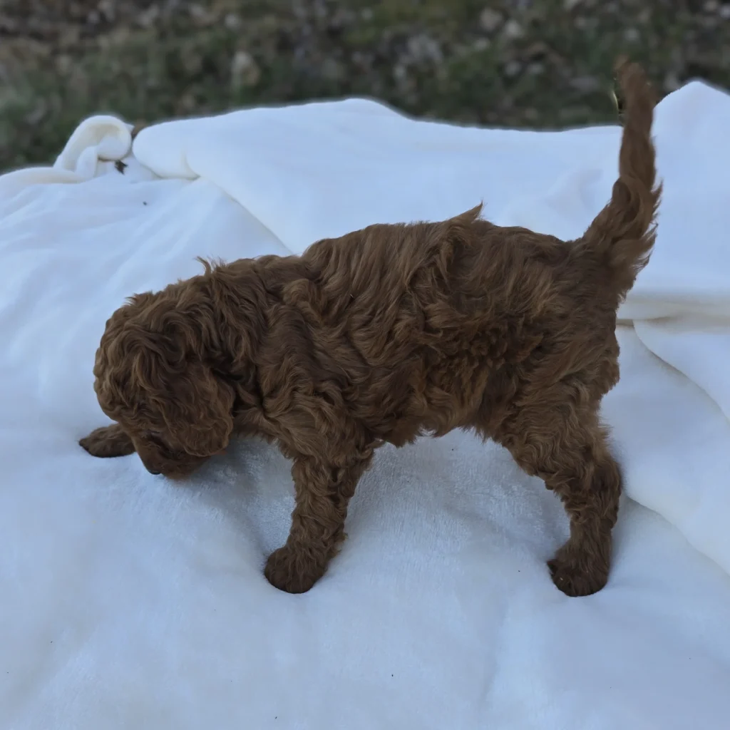 Meet Boy 1200, a sweet and well-bred F1B Mini Goldendoodle! He was born on December 8, 2025, and is expected to be 20–30 lbs fully grown — an ideal size for both active families and cozy homes. He’ll be ready to go home on or after February 7, 2026.