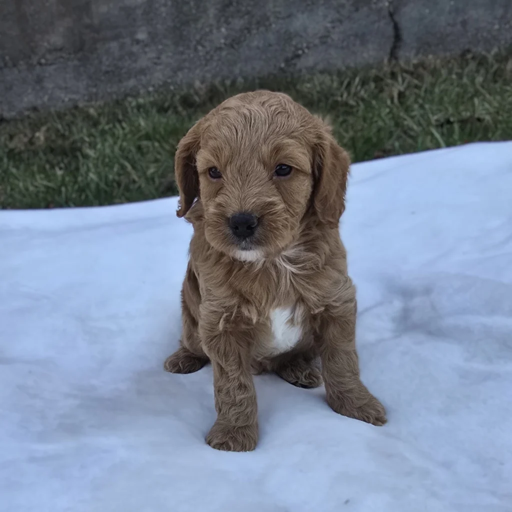 Meet Boy 1466, a sweet and well-bred F1B Mini Goldendoodle! He was born on January 29, 2026, and is expected to be 20–30 lbs fully grown — an ideal size for both active families and cozy homes. He will be ready for his new home on or after April 2, 2026! His father is a 6.5 lb Miniature Poodle, and his mother is a 30 lb Mini Goldendoodle, giving him a fantastic combination of intelligence, friendliness, and low-shedding coat potential. He is being carefully raised and will be well-socialized, affectionate, and ready to bond with his new family.