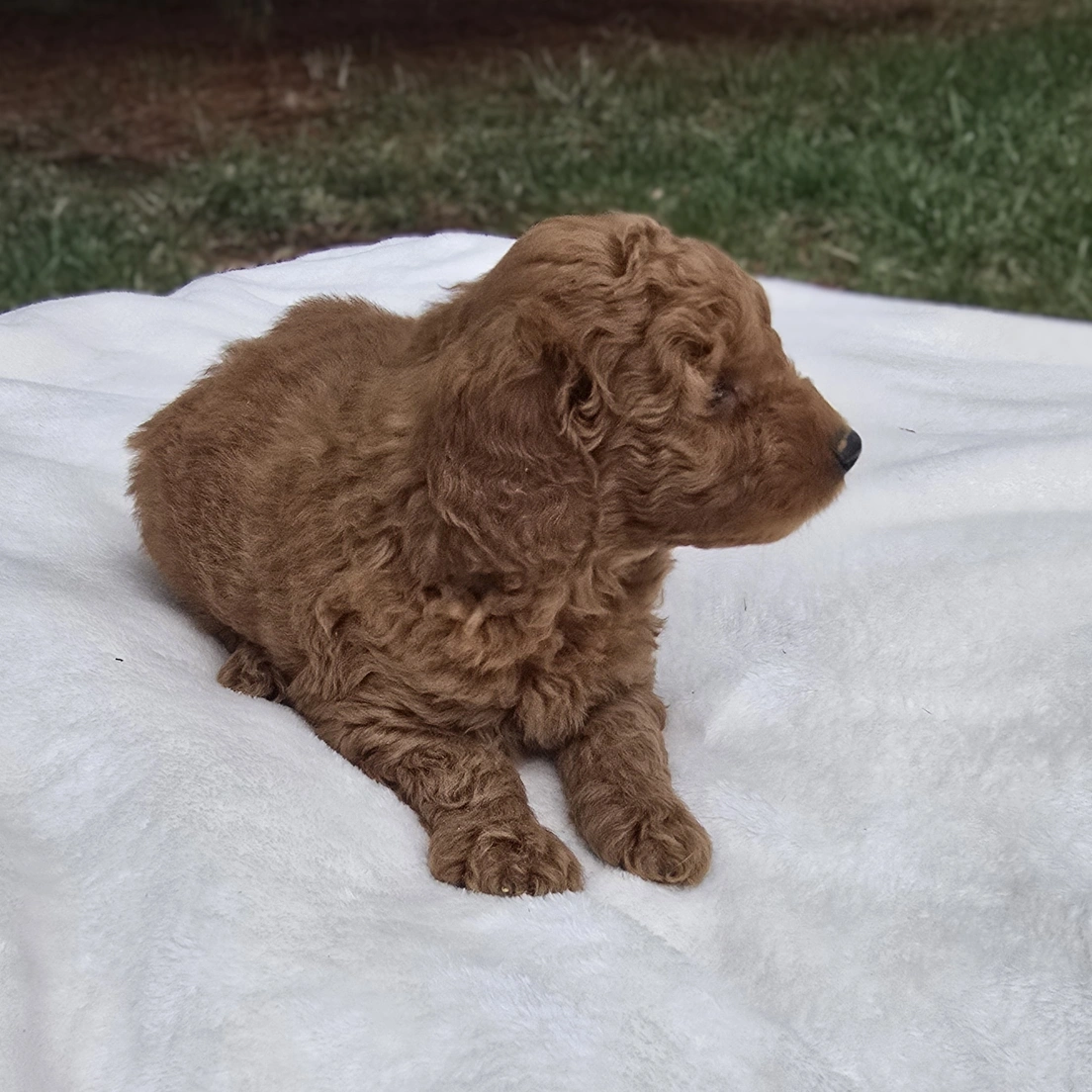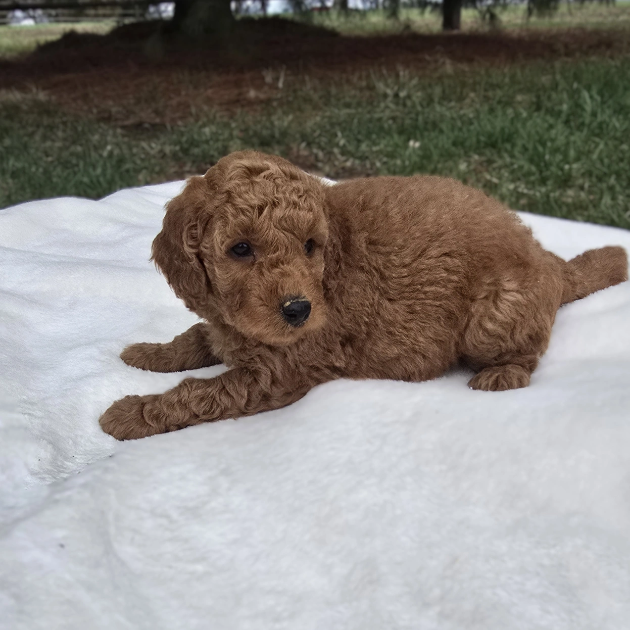 Meet Boy 1474, a sweet and well-bred F1B Mini Goldendoodle! He was born on January 25, 2026, and is expected to be 15–30 lbs fully grown — an ideal size for both active families and cozy homes. He will be ready for his new home on or after March 29, 2026! His father is a 6.5 lb Miniature Poodle, and his mother is a 30 lb Mini Goldendoodle, giving him a fantastic combination of intelligence, friendliness, and low-shedding coat potential. He is being carefully raised and will be well-socialized, affectionate, and ready to bond with his new family.