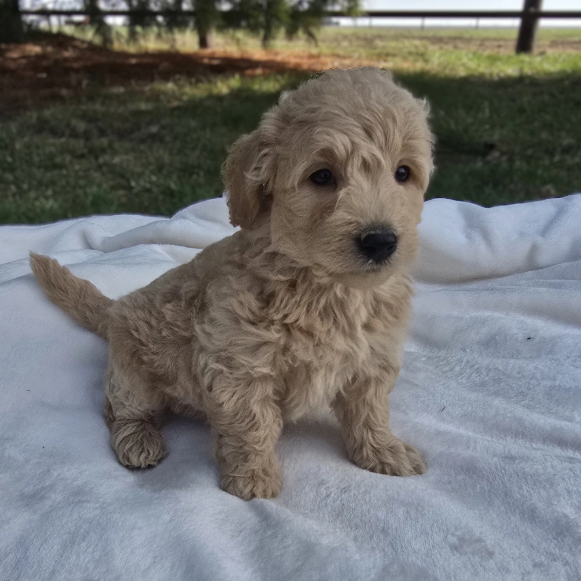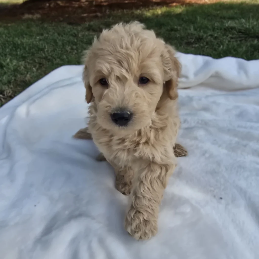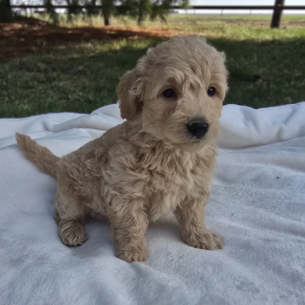 Meet Boy 1476, a sweet and well-bred F1B Mini Goldendoodle! He was born on January 25, 2026, and is expected to be 15–30 lbs fully grown — an ideal size for both active families and cozy homes. He will be ready for his new home on or after March 29, 2026! His father is a 6.5 lb Miniature Poodle, and his mother is a 30 lb Mini Goldendoodle, giving him a fantastic combination of intelligence, friendliness, and low-shedding coat potential. He is being carefully raised and will be well-socialized, affectionate, and ready to bond with his new family.