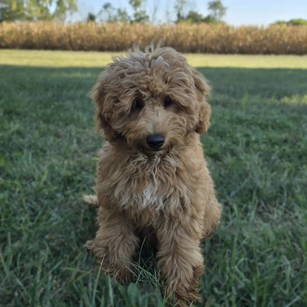 As a F1B Mini Goldendoodle, Boy 1716 boasts a wonderful blend of 75% Mini Poodle and 25% Golden Retriever, inheriting the best traits from both breeds. Born on June 4th, 2025, he’s expected to weigh between 12–20 lbs when fully grown — the perfect size for a variety of living situations. With a 10 lb. Miniature Poodle dad and a 25 lb. Mini Goldendoodle mom, Boy 1716 has the perfect mix of charm and companionship.