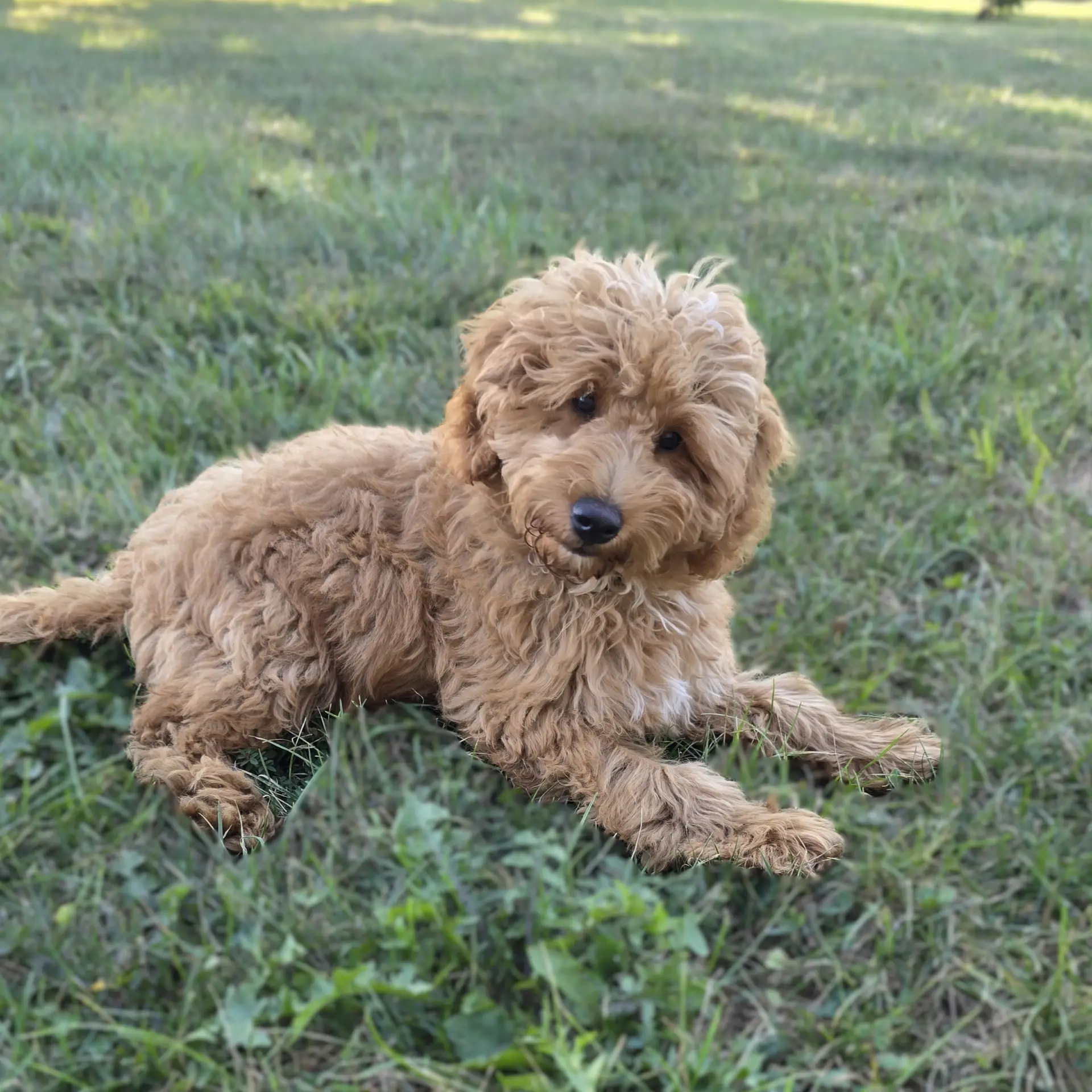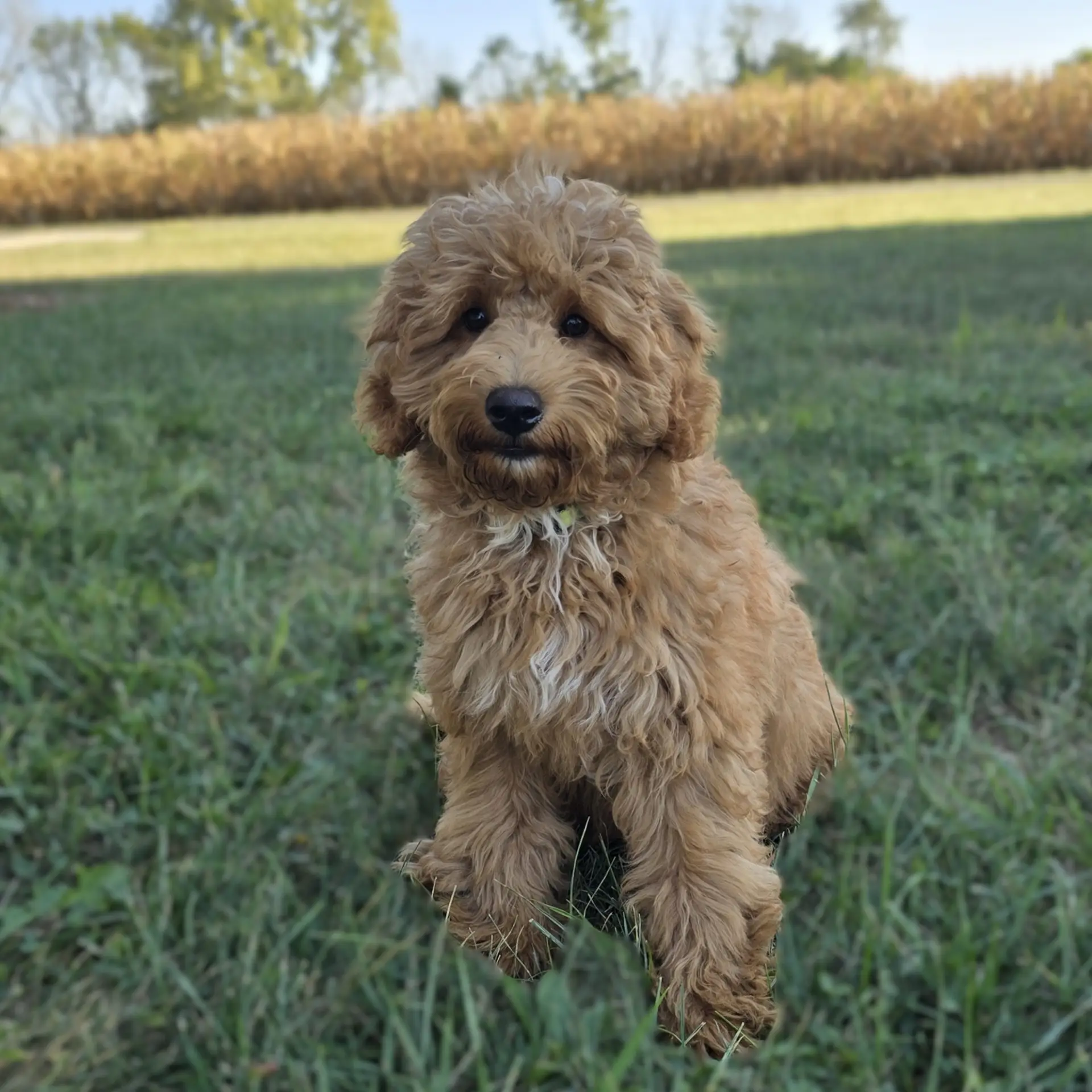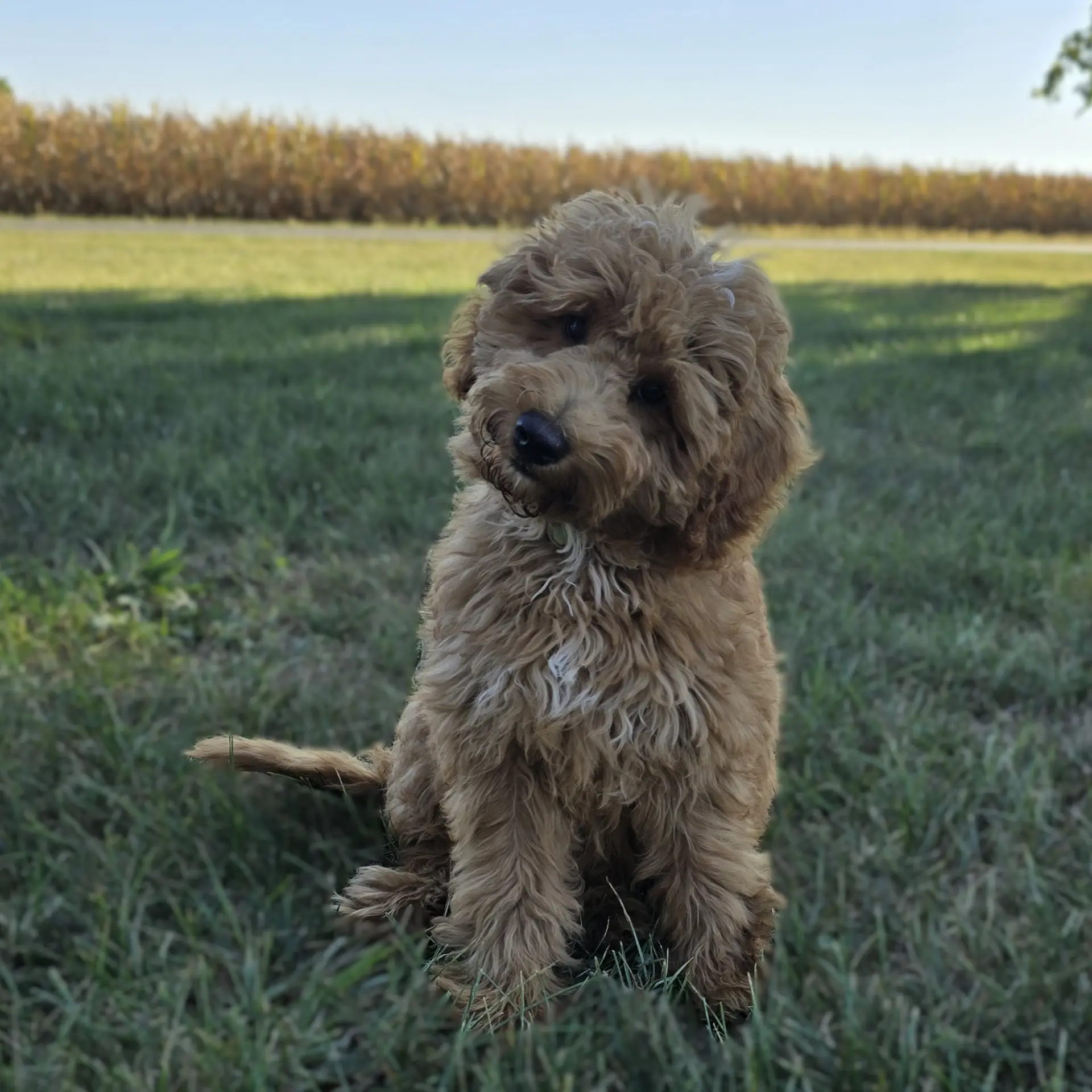 As a F1B Mini Goldendoodle, Boy 1716 boasts a wonderful blend of 75% Mini Poodle and 25% Golden Retriever, inheriting the best traits from both breeds. Born on June 4th, 2025, he’s expected to weigh between 12–20 lbs when fully grown — the perfect size for a variety of living situations. With a 10 lb. Miniature Poodle dad and a 25 lb. Mini Goldendoodle mom, Boy 1716 has the perfect mix of charm and companionship.