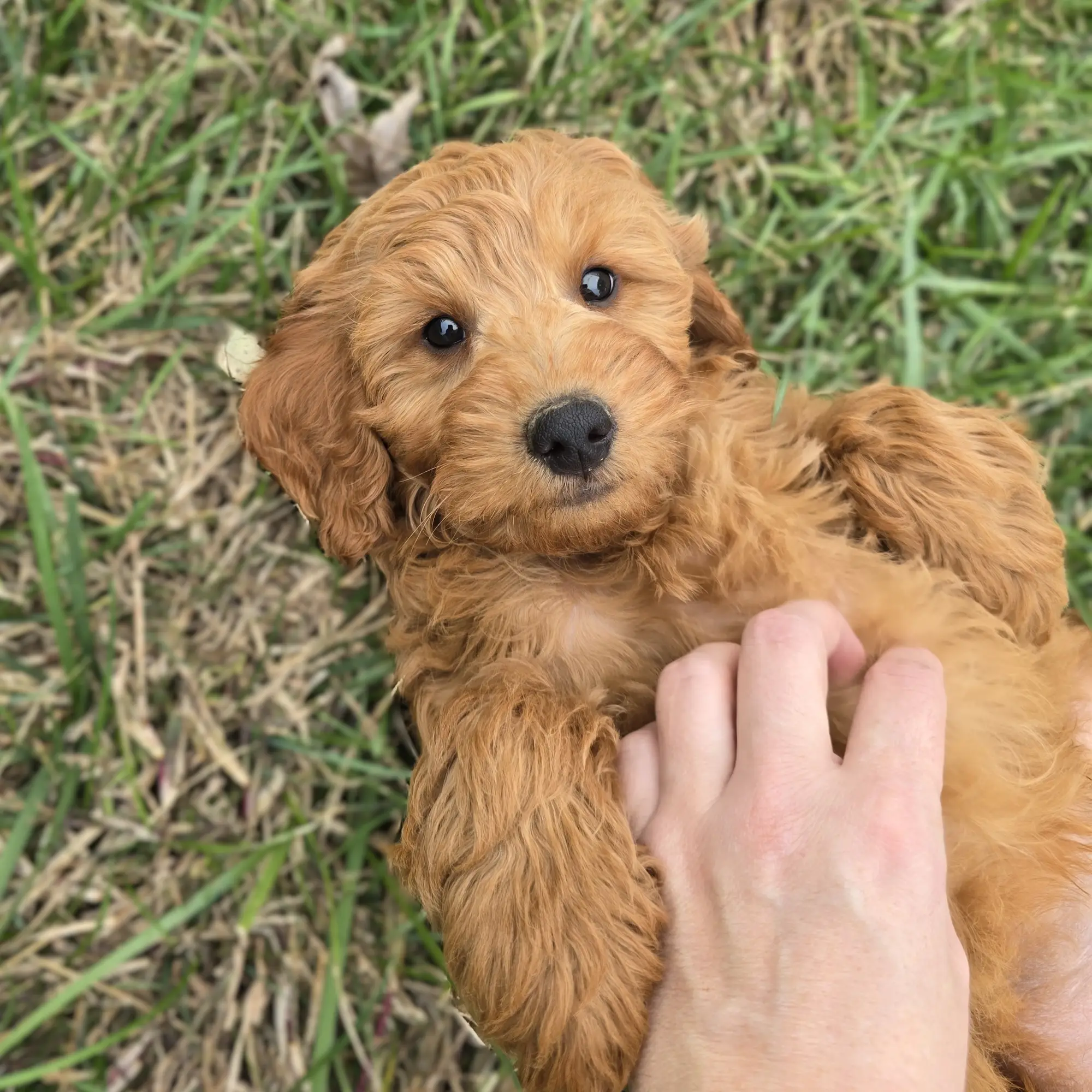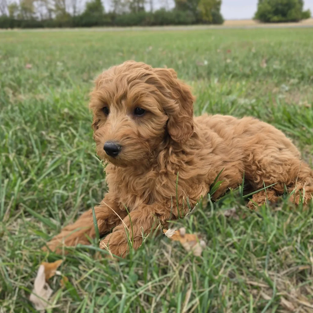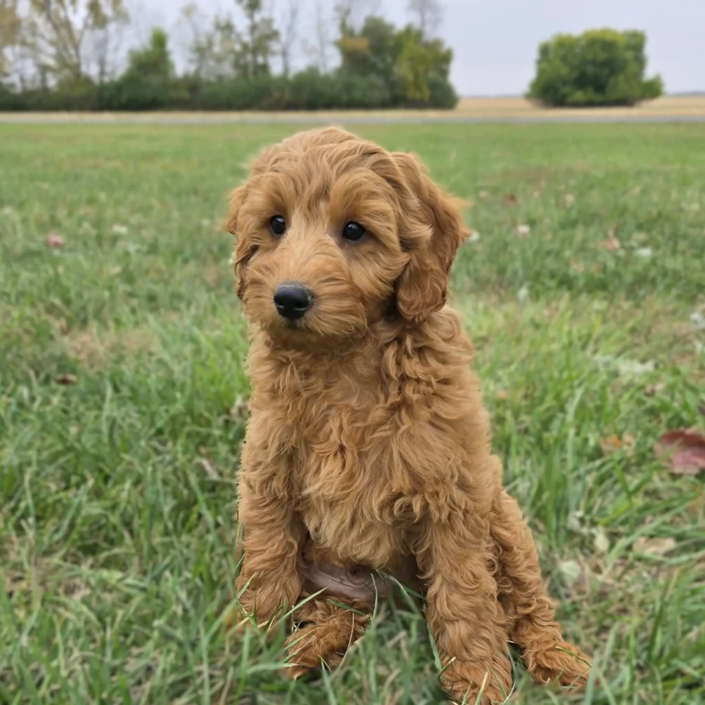 Brooks is a F1B Mini Goldendoodle — 75% Mini Poodle and 25% Golden Retriever. He was born on August 6th, 2025, and is expected to weigh around 18 lbs when fully grown. His dad is a 6.5 lb. Miniature Poodle, and his mom is a 22 lb. Mini Goldendoodle, giving him a wonderful combination of traits from both parents.