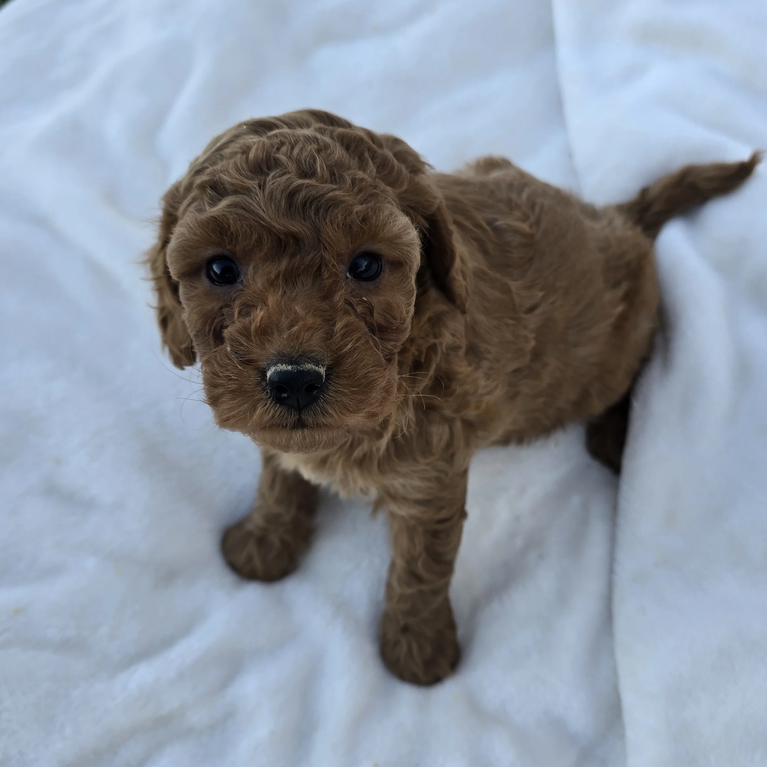 Her father is a 6.5 lb Miniature Poodle, and her mother is a 30 lb Mini Goldendoodle, giving her a fantastic combination of intelligence, friendliness, and low-shedding coat potential. She is being carefully raised and will be well-socialized, affectionate, and ready to bond with her new family.