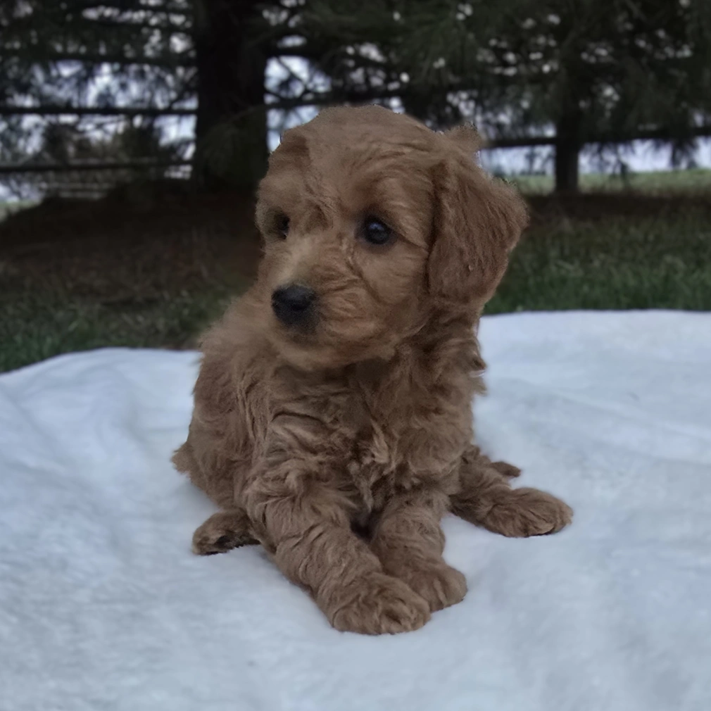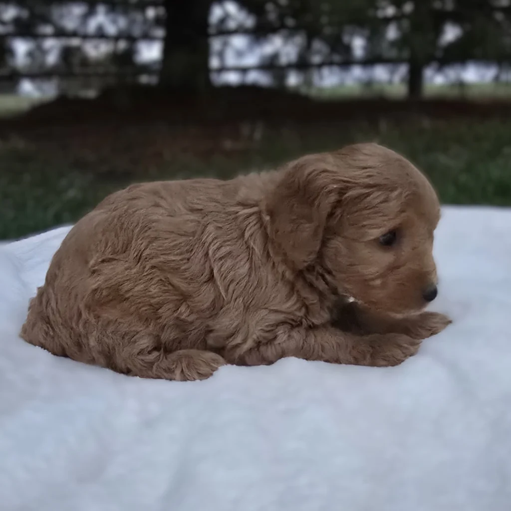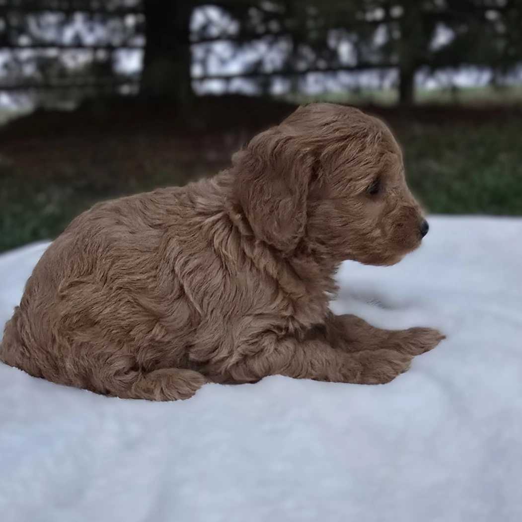 Meet Girl 1450, a sweet and well-bred F1B Mini Goldendoodle! She was born on January 25, 2026, and is expected to be 15–30 lbs fully grown — an ideal size for both active families and cozy homes. She will be ready for her new home on or after March 29, 2026! Her father is a 6.5 lb Miniature Poodle, and her mother is a 30 lb Mini Goldendoodle, giving her a fantastic combination of intelligence, friendliness, and low-shedding coat potential. She is being carefully raised and will be well-socialized, affectionate, and ready to bond with her new family.