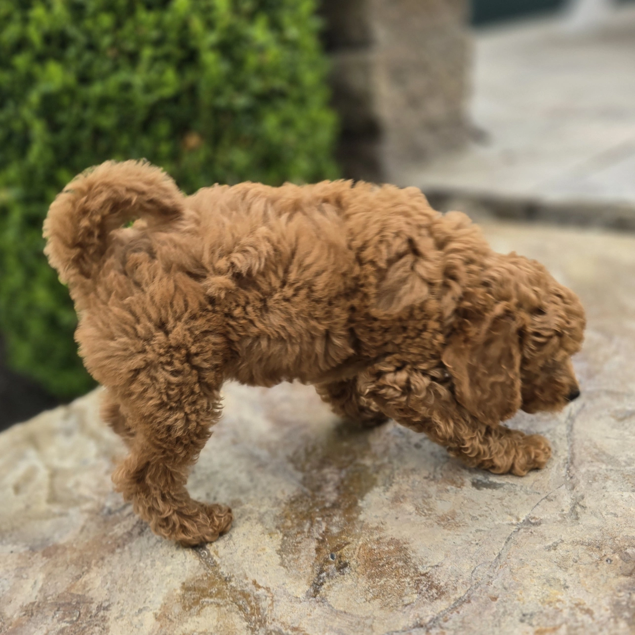 Meet Girl 1463, a sweet and well-bred F1B Mini Goldendoodle! She was born on January 29, 2026, and is expected to be 15–18 lbs fully grown — an ideal size for both active families and cozy homes. She is ready for her new home! Her father is a 6.5 lb Miniature Poodle, and her mother is a 30 lb Mini Goldendoodle, giving her a fantastic combination of intelligence, friendliness, and low-shedding coat potential. She is being carefully raised and will be well-socialized, affectionate, and ready to bond with his new family.