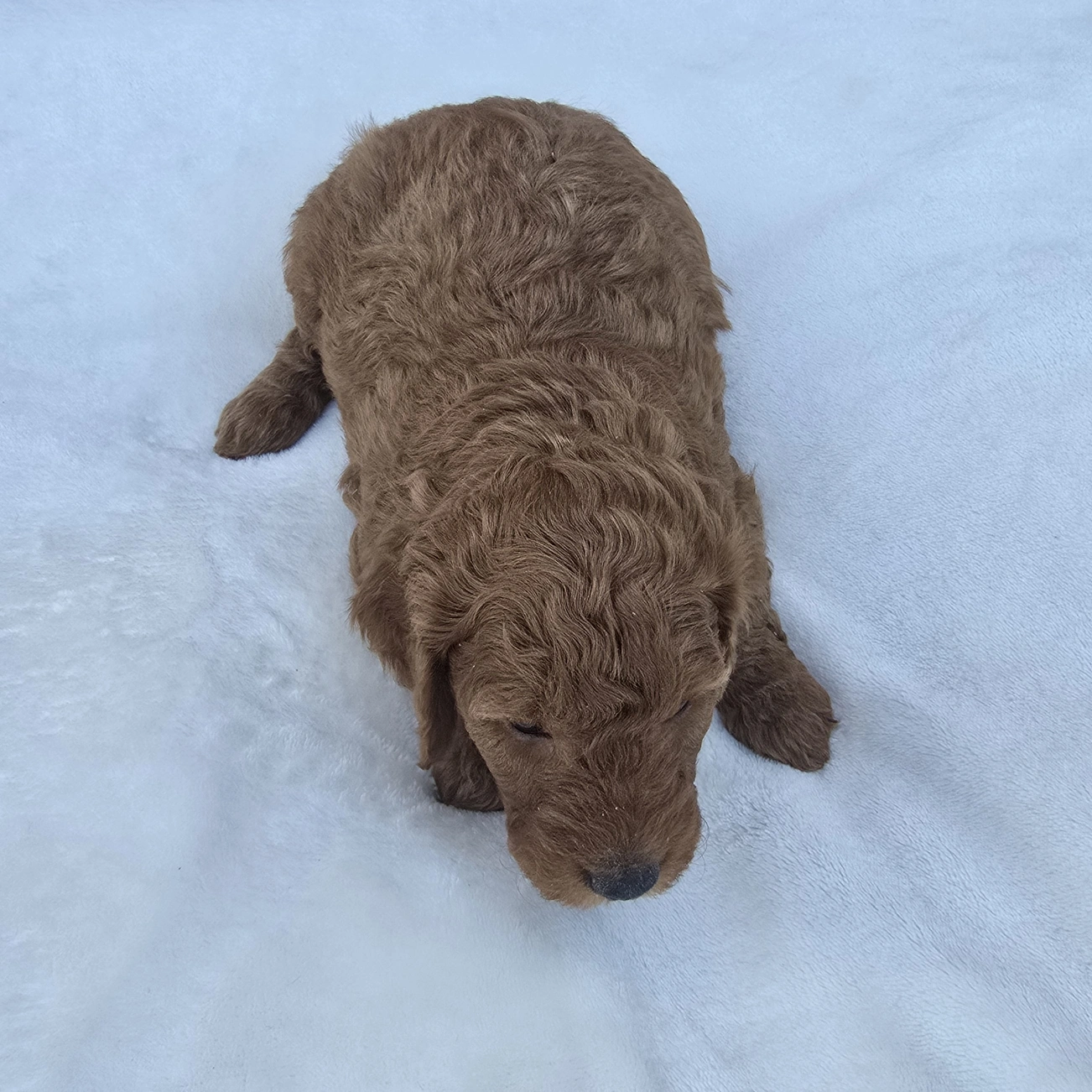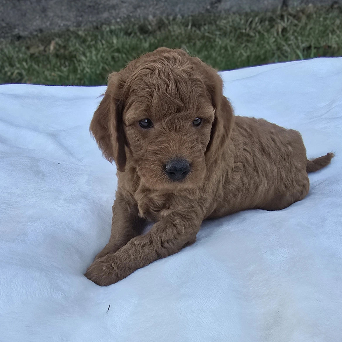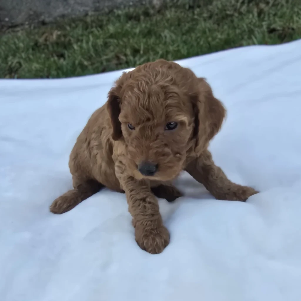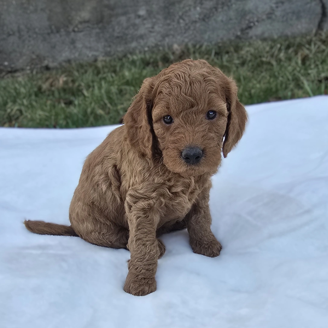 Meet Girl 1481, a sweet and well-bred F1B Mini Goldendoodle! She was born on January 29, 2026, and is expected to be 20–30 lbs fully grown — an ideal size for both active families and cozy homes. She will be ready for her new home on or after April 2, 2026! Her father is a 6.5 lb Miniature Poodle, and her mother is a 30 lb Mini Goldendoodle, giving her a fantastic combination of intelligence, friendliness, and low-shedding coat potential. She is being carefully raised and will be well-socialized, affectionate, and ready to bond with his new family.