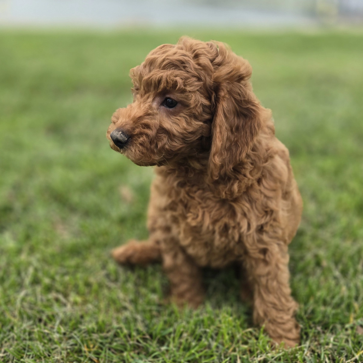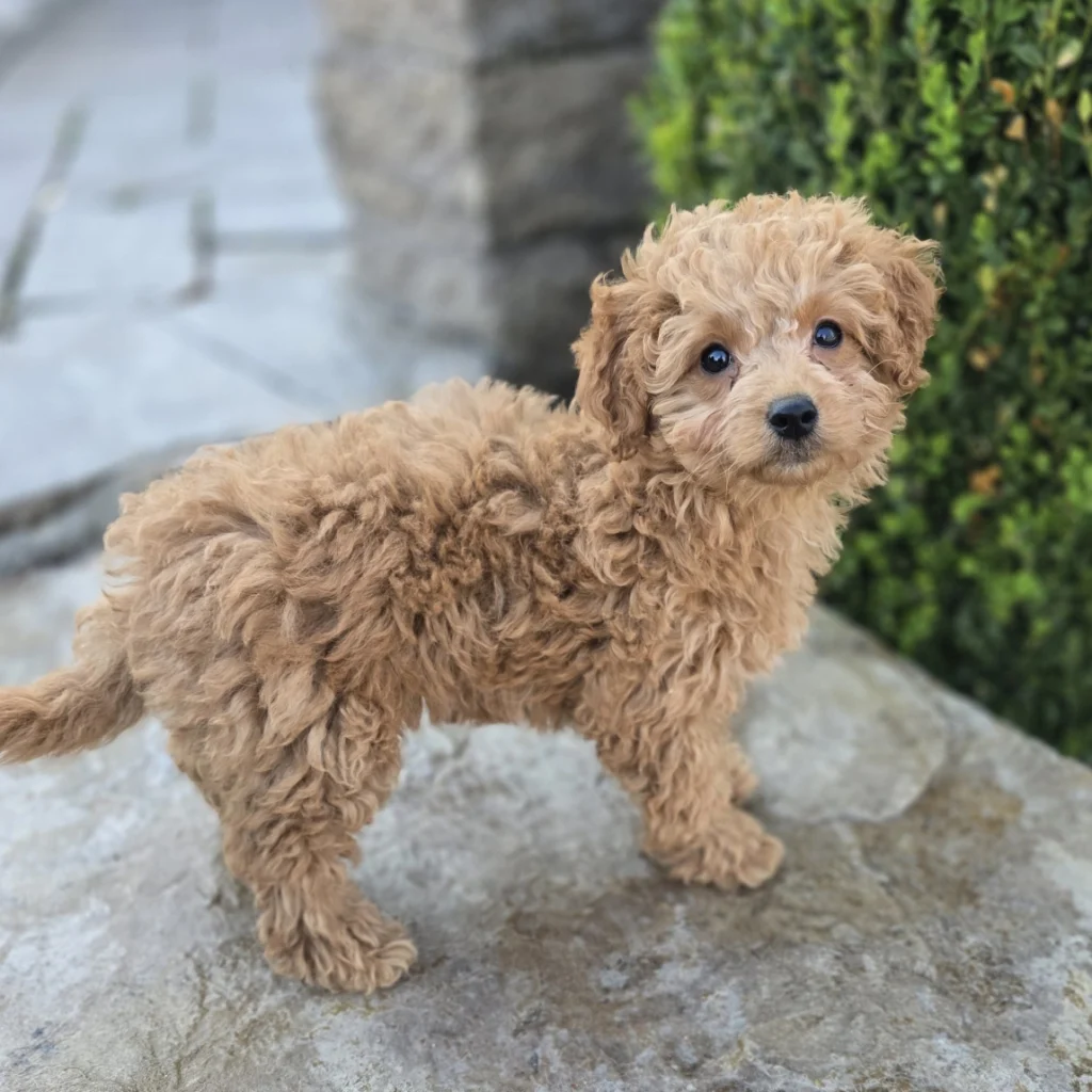 Meet Girl 1481, a sweet and well-bred F1B Mini Goldendoodle! She was born on January 29, 2026, and is expected to be 30-35 lbs fully grown — an ideal size for both active families and cozy homes. She is ready for her new home! Her father is a 6.5 lb Miniature Poodle, and her mother is a 30 lb Mini Goldendoodle, giving her a fantastic combination of intelligence, friendliness, and low-shedding coat potential. She is being carefully raised and will be well-socialized, affectionate, and ready to bond with his new family.