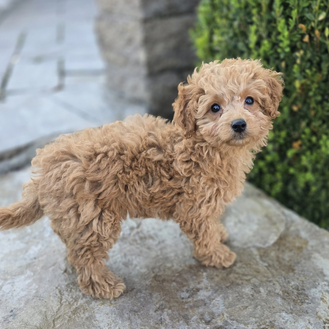 Meet Girl 1486, a sweet and well-bred F1B Mini Goldendoodle! She was born on January 25, 2026, and is expected to be 9-12 lbs fully grown — an ideal size for both active families and cozy homes. She is ready for her new home! Her father is a 6.5 lb Miniature Poodle, and her mother is a 30 lb Mini Goldendoodle, giving her a fantastic combination of intelligence, friendliness, and low-shedding coat potential. She is being carefully raised and will be well-socialized, affectionate, and ready to bond with her new family.
