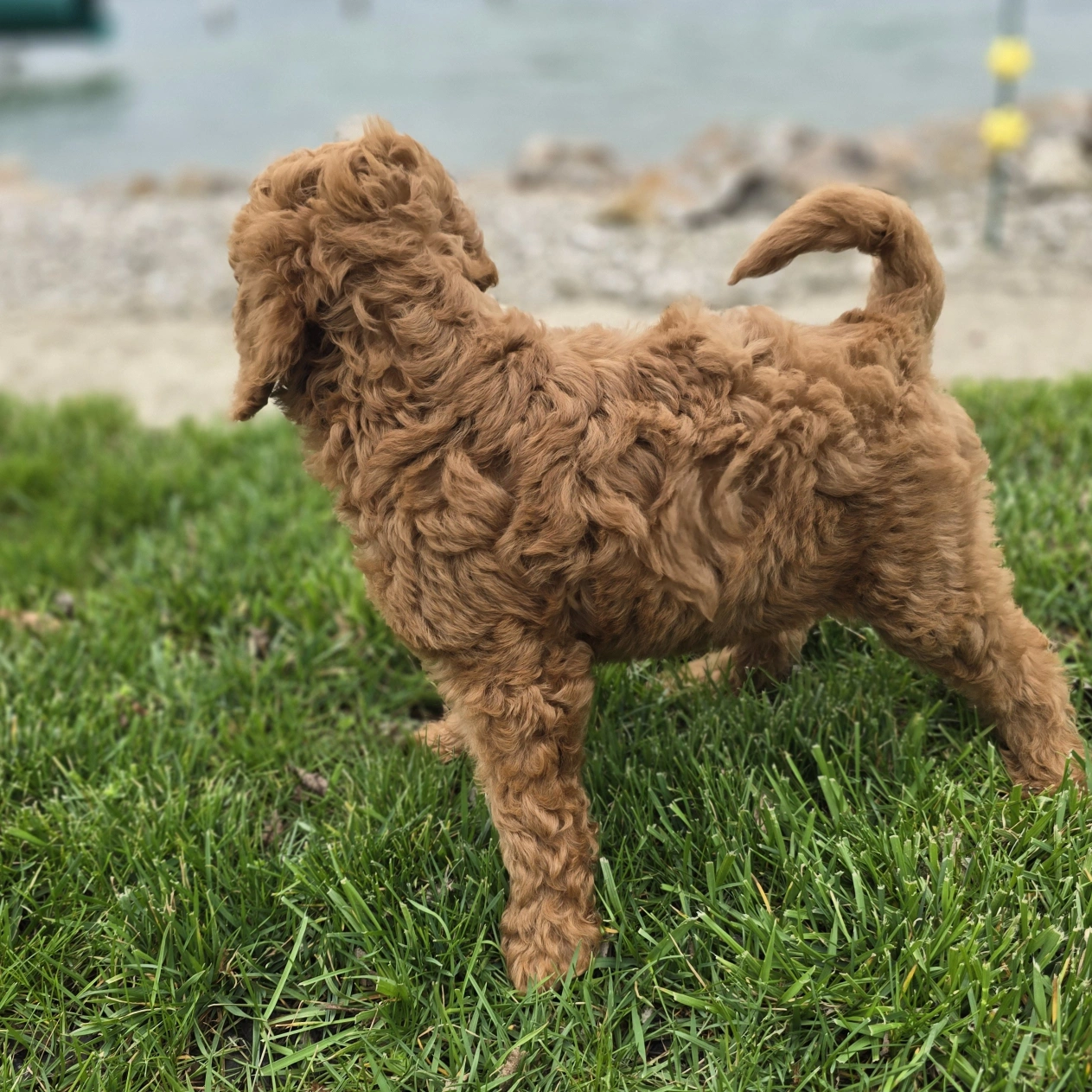 Her dad is a 6.5 lb. Miniature Poodle, and her mom is a 30 lb. Mini Goldendoodle, giving her a fantastic combination of intelligence, friendliness, and low-shedding coat potential. Girl 1487 has been carefully raised, well socialized, affectionate, and ready to build a loving bond with her new family.
