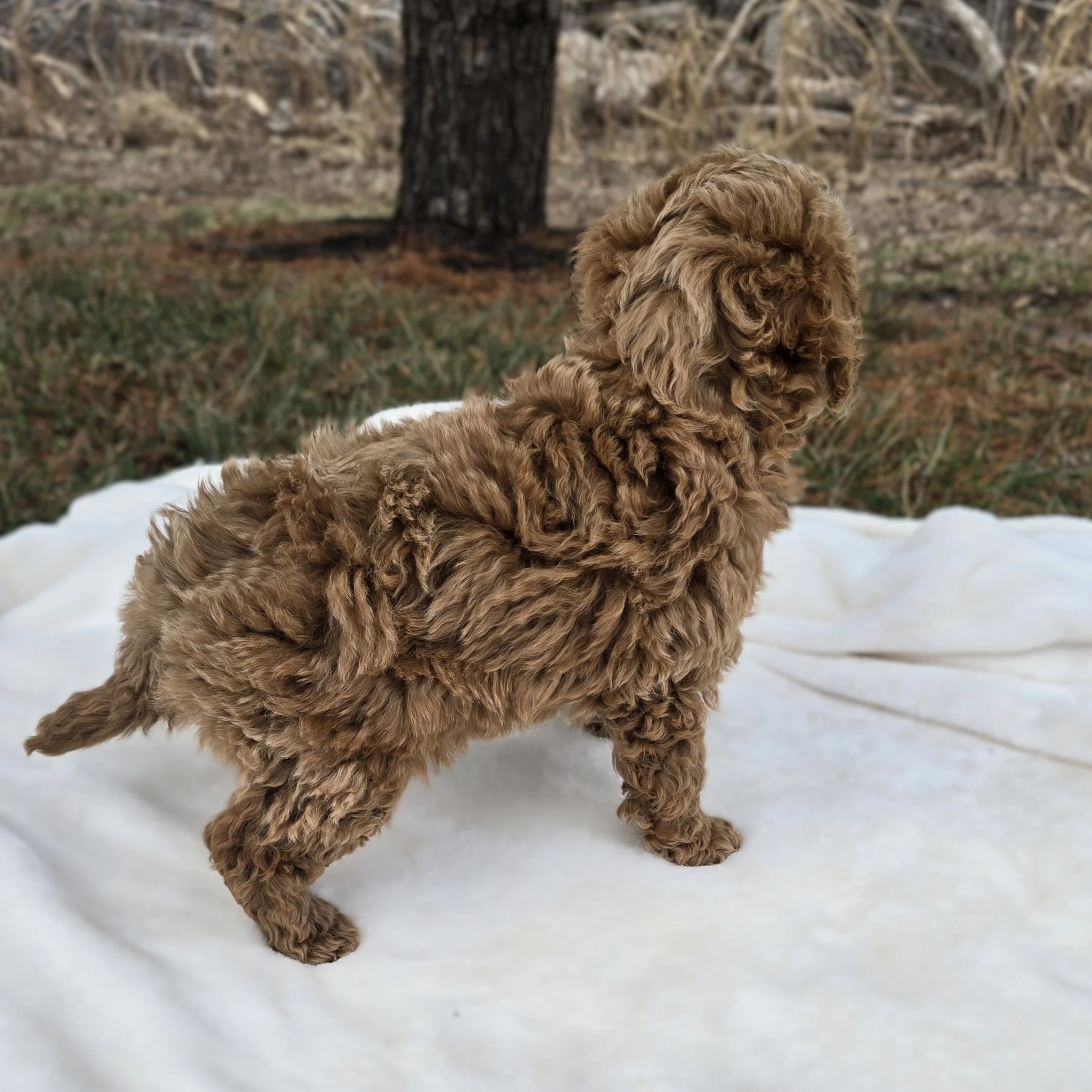 Her father is a 6.5 lb Miniature Poodle, and her mother is a 26 lb Mini Goldendoodle, giving her a fantastic combination of intelligence, friendliness, and low-shedding coat potential. She is being carefully raised and will be well-socialized, affectionate, and ready to bond with her new family.