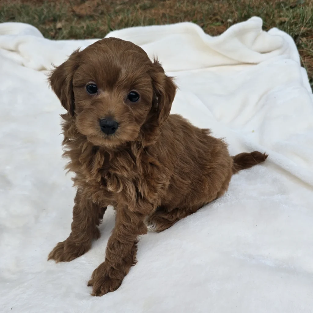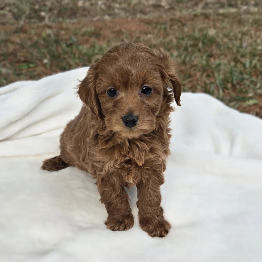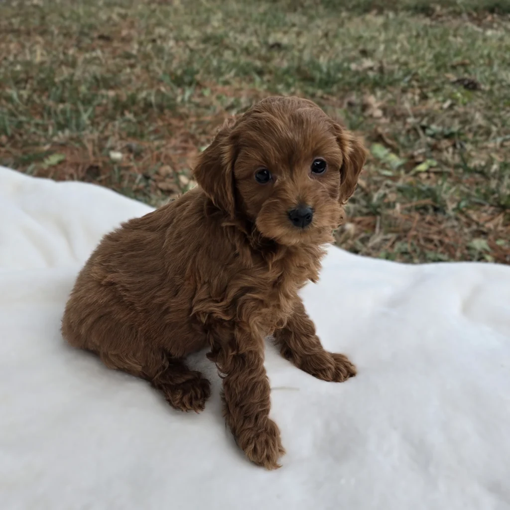 Meet Jimma, a sweet and well-bred F1B Mini Goldendoodle! She was born on November 25, 2025, and is expected to be 10–20 lbs fully grown — an ideal size for both active families and cozy homes. She’ll be ready to go home on or after January 24, 2026.