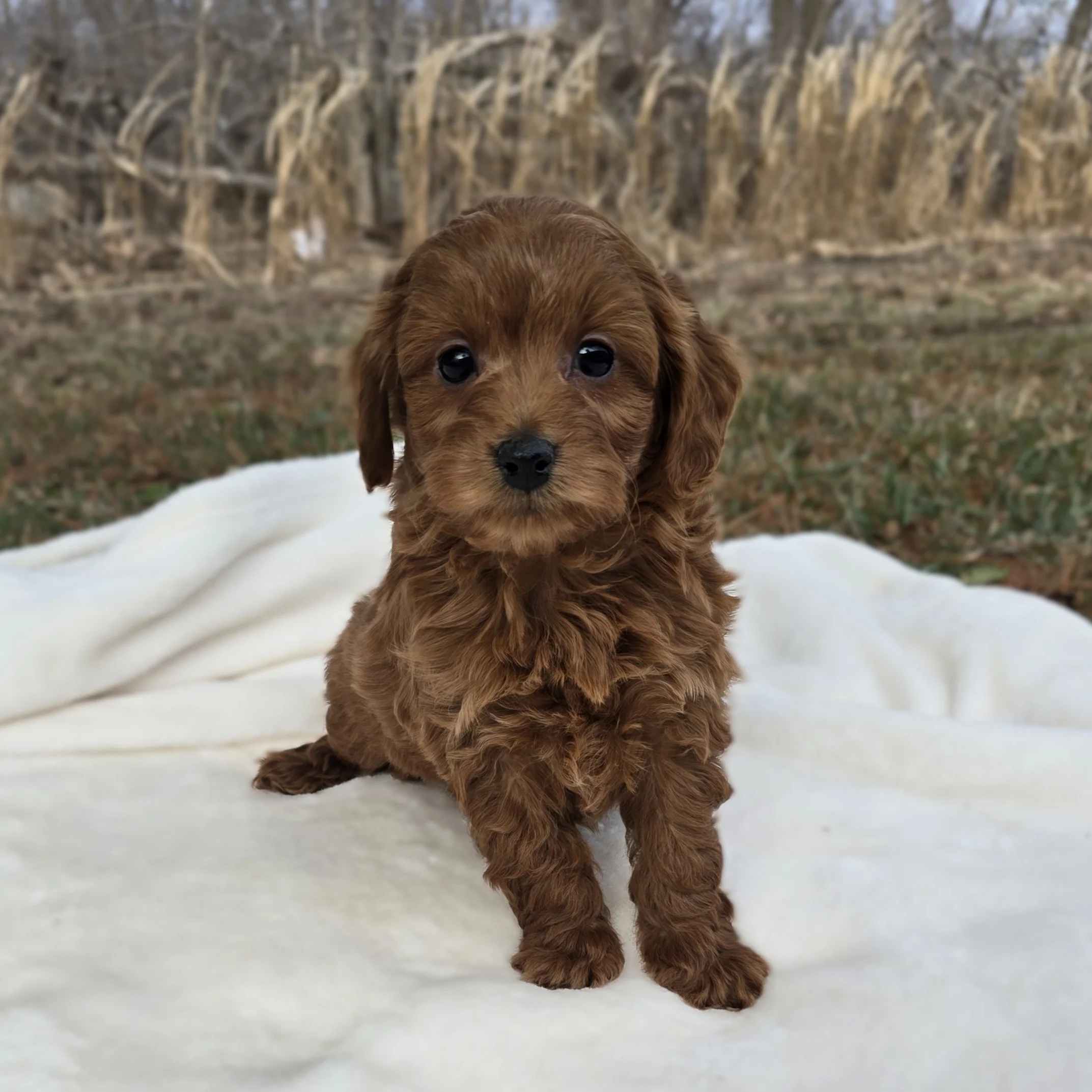 Meet Jimma, a sweet and well-bred F1B Mini Goldendoodle! She was born on November 25, 2025, and is expected to be 10–20 lbs fully grown — an ideal size for both active families and cozy homes. She’ll be ready to go home on or after January 24, 2026.