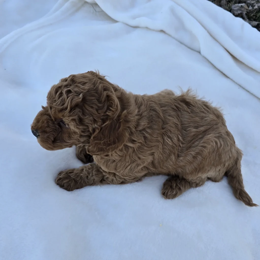 Meet Girl 1706, a sweet and well-bred F1B Mini Goldendoodle! She was born on December 8, 2025, and is expected to be 20–30 lbs fully grown — an ideal size for both active families and cozy homes. She’ll be ready to go home on or after February 7, 2026.