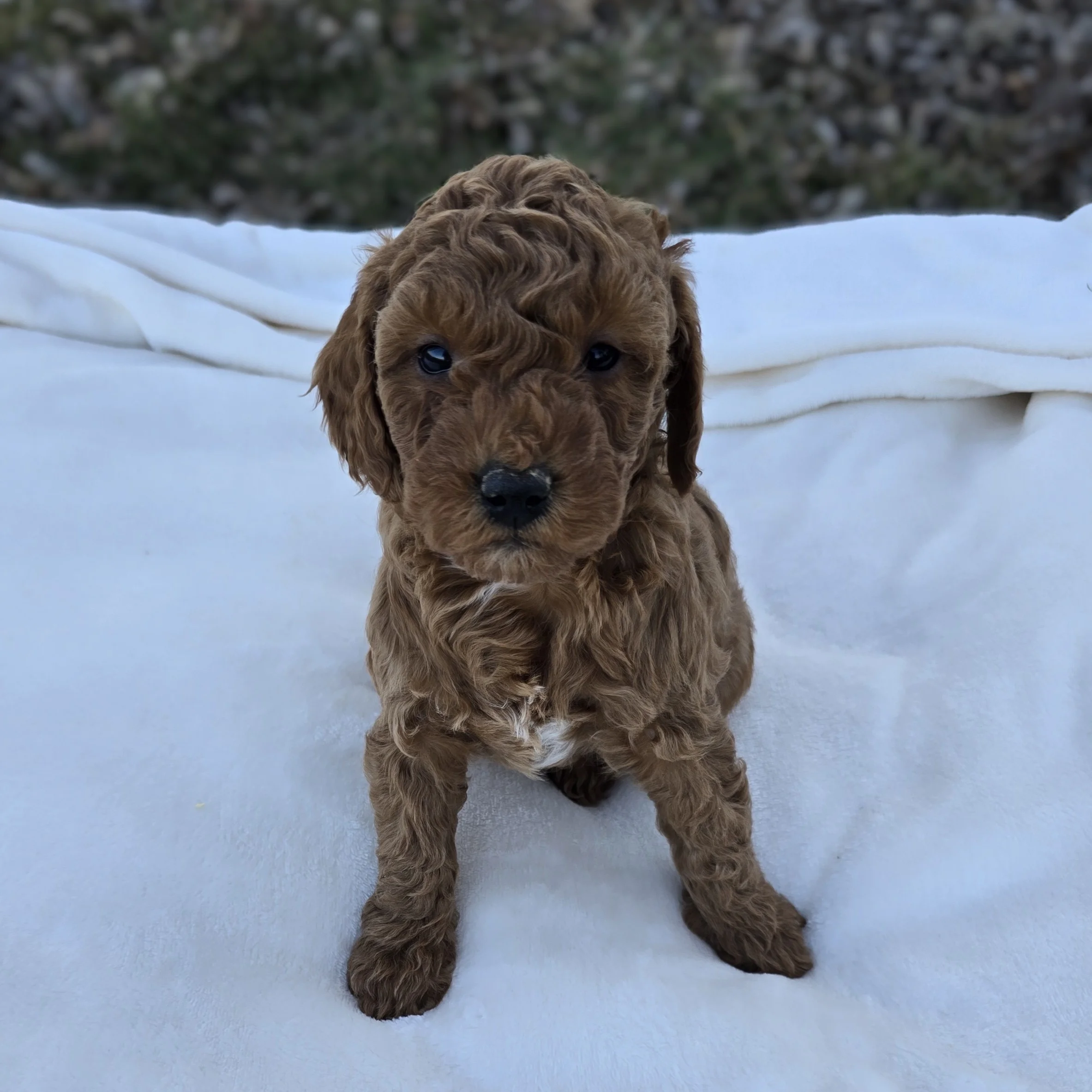 Meet Girl 1706, a sweet and well-bred F1B Mini Goldendoodle! She was born on December 8, 2025, and is expected to be 20–30 lbs fully grown — an ideal size for both active families and cozy homes. She’ll be ready to go home on or after February 7, 2026.