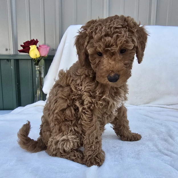 Her dad is a 6.5 lb. Miniature Poodle, and her mom is a 30 lb. Mini Goldendoodle, giving her a fantastic combination of intelligence, friendliness, and low-shedding coat potential. Girl 1706 has been carefully raised, well socialized, affectionate, and ready to build a loving bond with her new family.