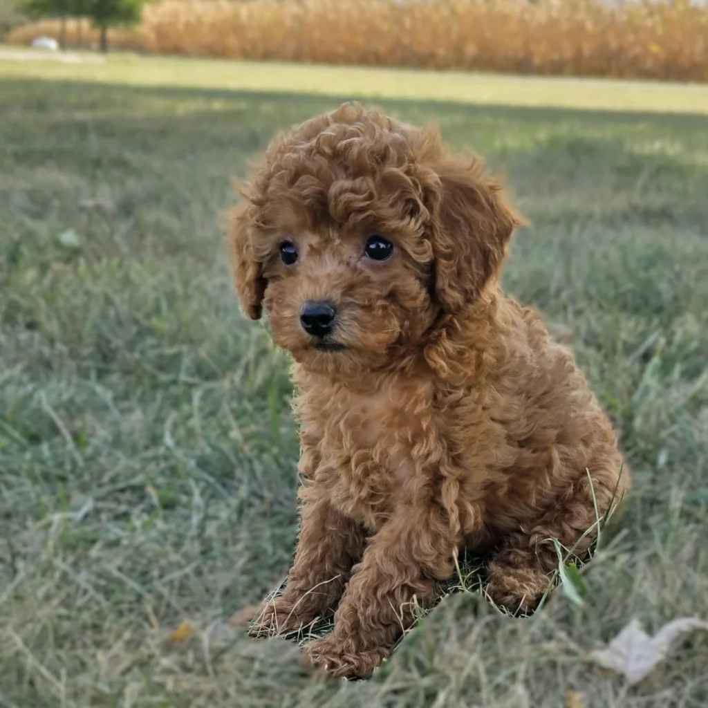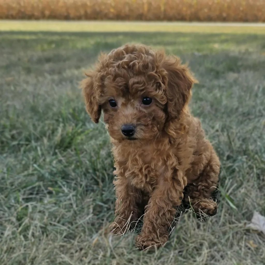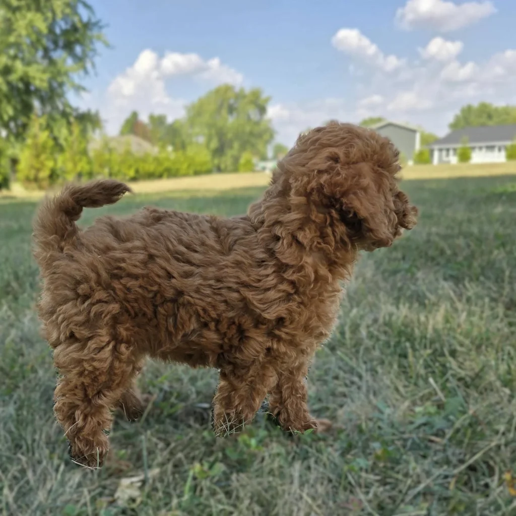 Joey is a F1B Mini Goldendoodle — 75% Mini Poodle and 25% Golden Retriever. She was born on August 6th, 2025, and is expected to weigh around 10 lbs when fully grown. Her dad is a 6.5 lb. Miniature Poodle, and her mom is a 22 lb. Mini Goldendoodle, giving her a wonderful combination of traits from both parents.