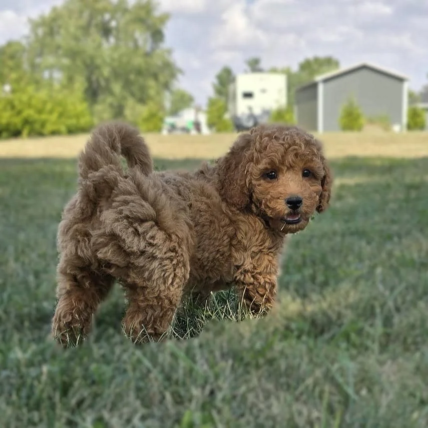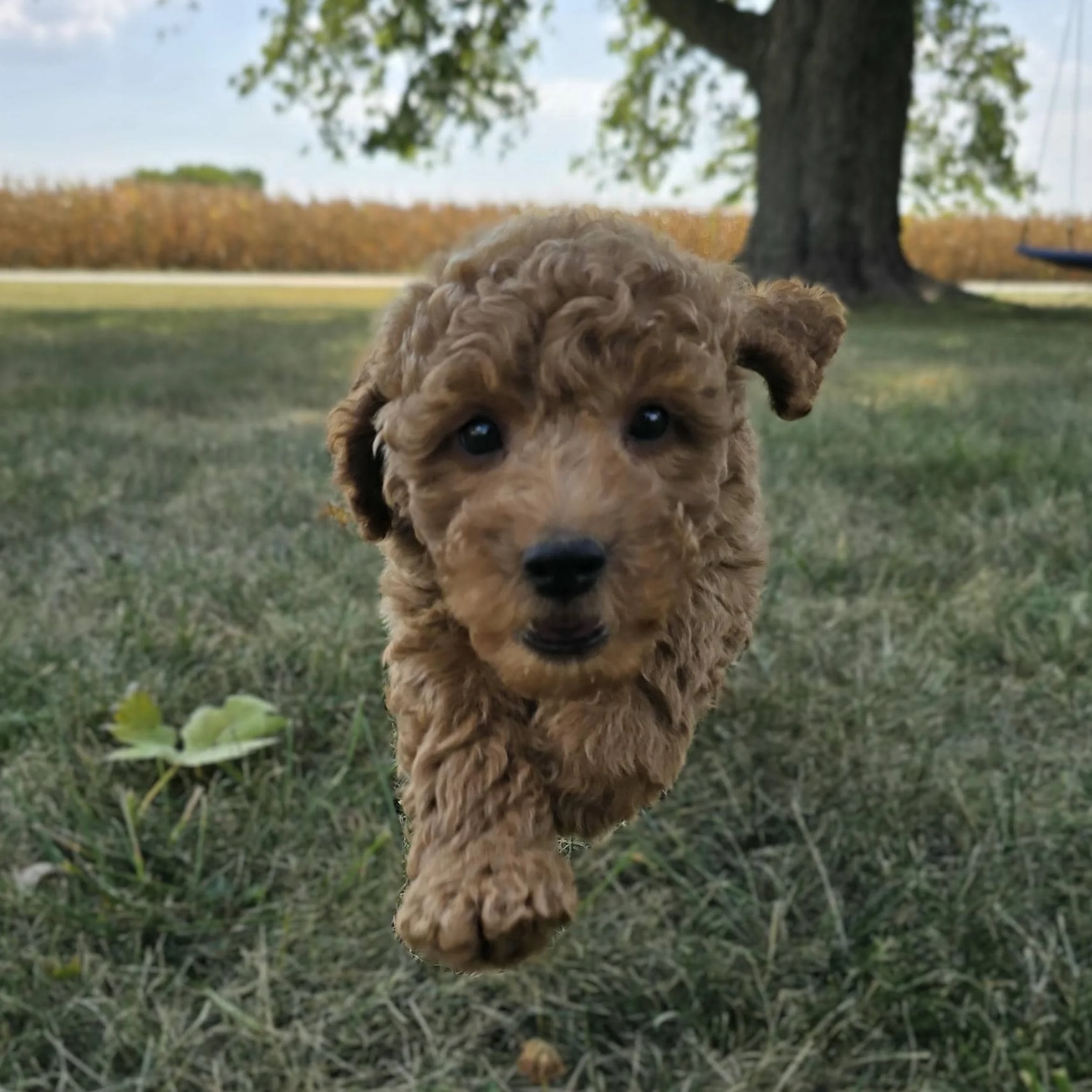 Girl 1792 is a F1B Mini Goldendoodle. She’s 75% Mini Poodle and 25% Golden Retriever. She was born on Aug. 6th, 2025, and will weigh approx. 20 lbs when she’s fully grown. She’ll be ready to go to her new home on or after Oct. 7th, 2025. Her dad is a 6.5 lb. Miniature Poodle, and her mom is a 22 lb. Mini Goldendoodle, so she’ll have some great traits from both. By the time she’s ready to leave, she’ll be well socialized and friendly.