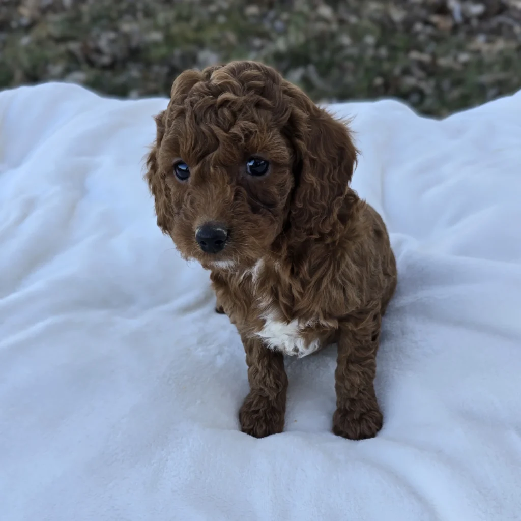 Meet Girl 1958, a sweet and well-bred F1B Mini Goldendoodle! She was born on December 8, 2025, and is expected to be 20–30 lbs fully grown — an ideal size for both active families and cozy homes. She’ll be ready to go home on or after February 7, 2026.