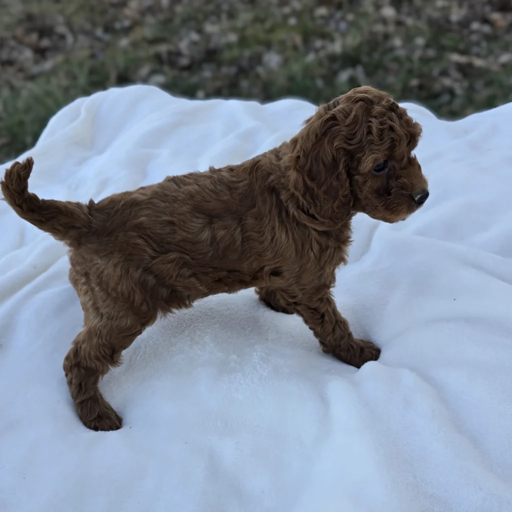 Her father is a 6.5 lb Miniature Poodle, and her mother is a 30 lb Mini Goldendoodle, giving her a fantastic combination of intelligence, friendliness, and low-shedding coat potential. She is being carefully raised and will be well-socialized, affectionate, and ready to bond with her new family.