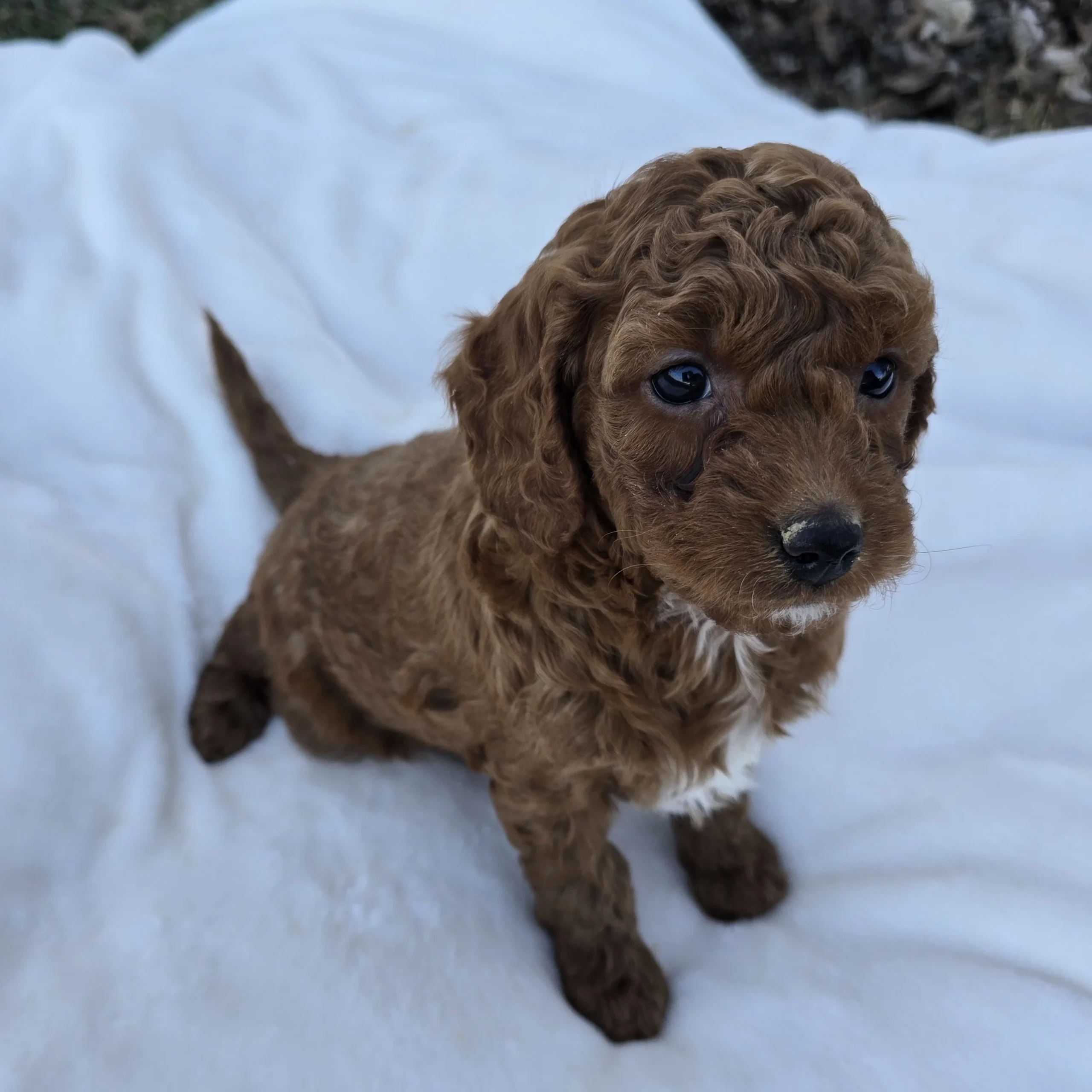 Her father is a 6.5 lb Miniature Poodle, and her mother is a 30 lb Mini Goldendoodle, giving her a fantastic combination of intelligence, friendliness, and low-shedding coat potential. She is being carefully raised and will be well-socialized, affectionate, and ready to bond with her new family.