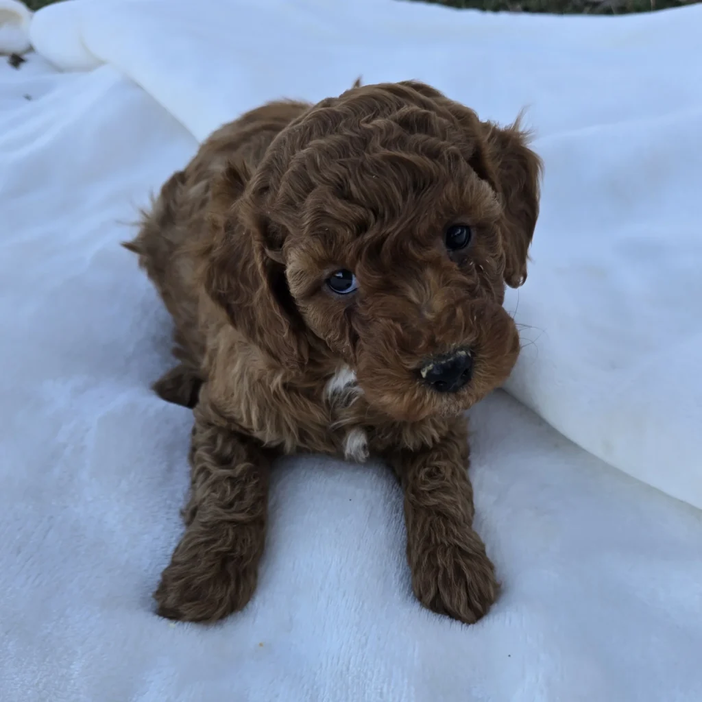Meet Girl 4212, a sweet and well-bred F1B Mini Goldendoodle! She was born on December 8, 2025, and is expected to be 20–30 lbs fully grown — an ideal size for both active families and cozy homes. She’ll be ready to go home on or after February 7, 2026.